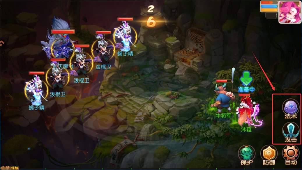 4、战斗操作指南:战斗是回合制。你的所有可选指令都排列在屏幕右侧。想主动进攻就选“攻击”或“法术”,想进行防御就选“防御”。