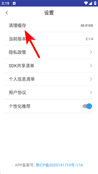 3、进入设置页面后,点击清理缓存,即可完成缓存清理操作。