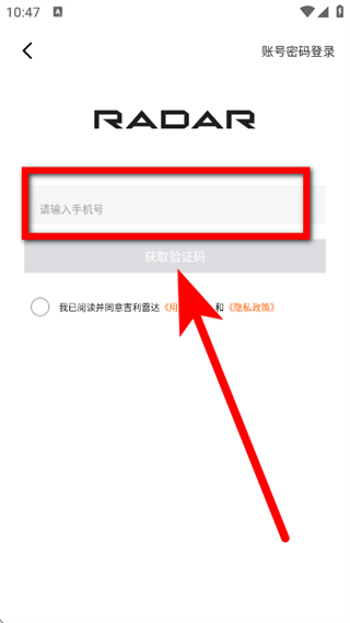 2、在登录页面,输入手机号,点击获取验证码。