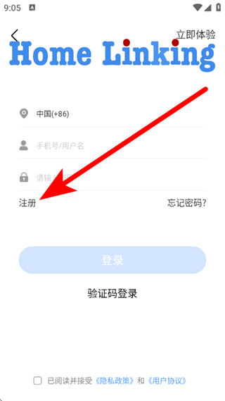 3、在登录页面,点击注册选项,进入注册帐号页面。