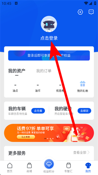 1、在车智汇首页,点击底部我的,进入个人页面。