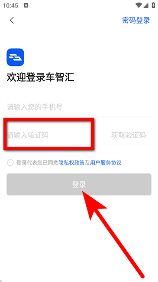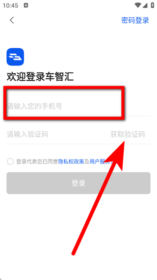 3、在欢迎登录页面,输入手机号,点击获取验证码。
