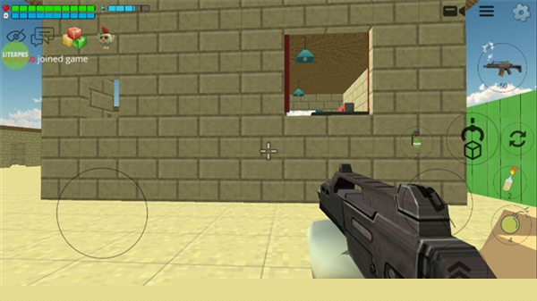3、游戏内通过左侧虚拟按键控制角色移动,右侧按键可执行射击、切换武器等操作,还能使用手雷类道具,界面顶部会显示角色的血量等状态信息。