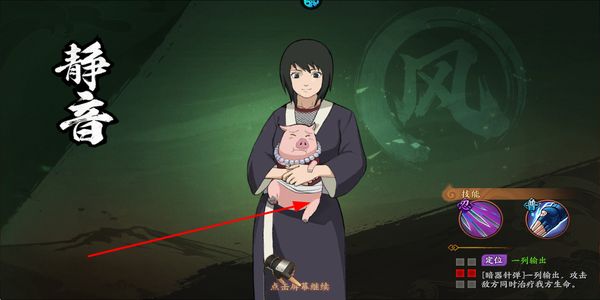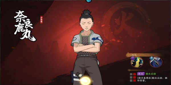 1、招募忍者,看查角色的技能与定位,该角色具备一列输出并治疗己方的效果,完成角色信息查看流程。