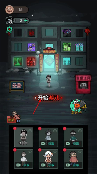 1、打开该恐怖游戏,找到界面中的开始游戏按钮,点击该按钮,进入模式选择界面。
