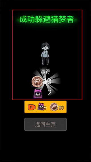 4、完成躲避猎梦者的操作后,等待结算界面出现,可查看获得的奖励,再选择返回主页。