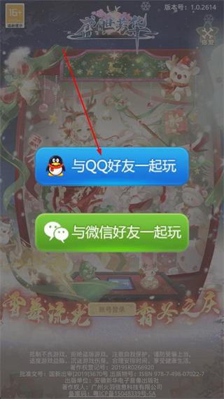2、在登录选择界面,选定“与QQ好友一起玩”选项,点击该选项进入对应的登录流程。