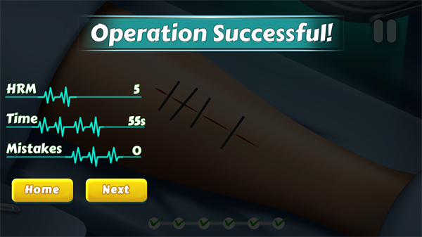 采用虚拟按键与拖拽操作模式,器械选择、切口控制等操作逻辑清晰,搭配详细新手引导,即便无医学知识基础,也能快速掌握核心手术技巧。