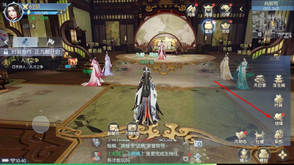 1、进入游戏主界面,点击右侧功能栏中的结缘图标 ,进入结缘系统。
