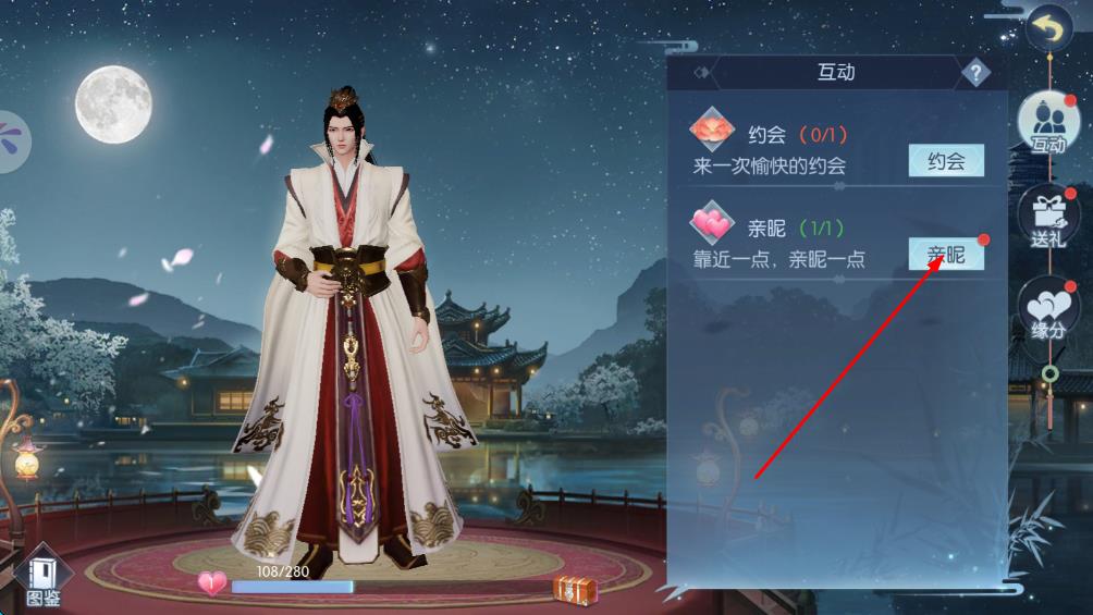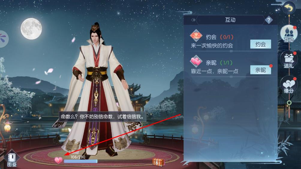 2、在角色脚下会显示一个粉色爱心形状的进度条,该进度条对应的数值就是心动值。
