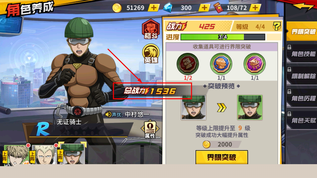 4、收集足够道具进行界限突破,提升角色等级上限,突破成功后总战力显著增长,增强战斗能力。