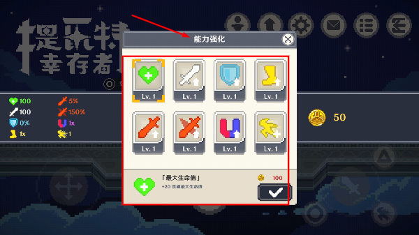 1、靠近合成台解锁能力强化选项,提升角色属性,为后续战斗筑牢基础。