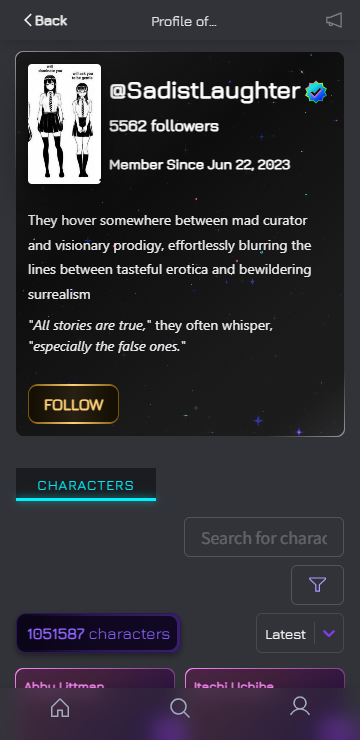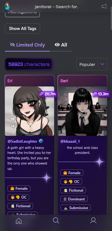 1.最大的特点在于角色来源高度自由,既有官方推荐,也有大量用户原创内容,不受题材限制,几乎任何你能想到的角色类型都能找到对应AI。