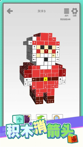 2. 箭头机制:每个积木块上都带有箭头,箭头方向指示了消除后相邻积木的移动方向。巧妙利用箭头方向,可以引发连锁消除和特殊效果。
