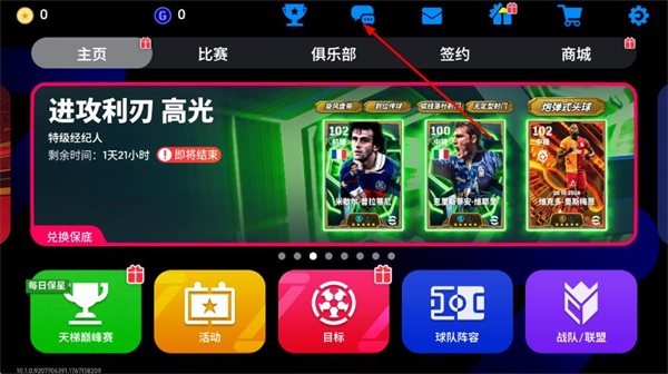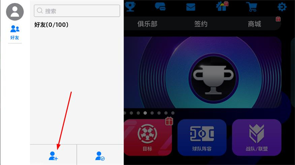 1、在实况足球首页,点击顶部的好友图标,进入好友页面。