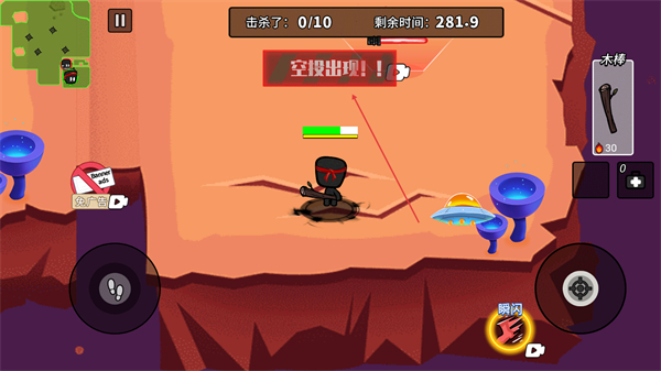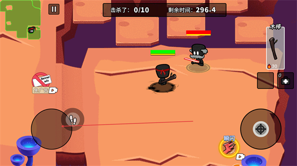 1、操控角色用木棒攻击敌人,以击杀10人为目标,推进对局进度。