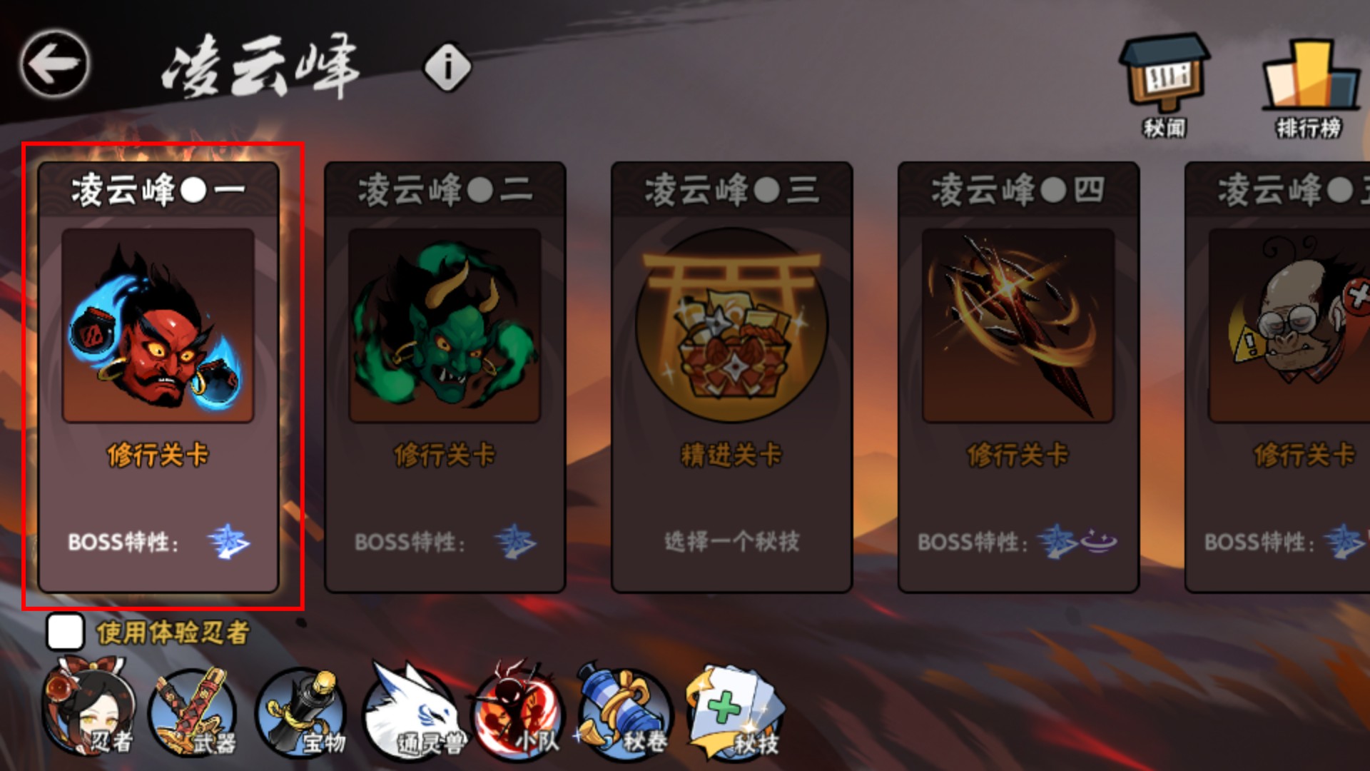 1、进入凌云峰一修行关卡,提前熟悉BOSS特性,搭配合适技能与装备,提升战斗效率。