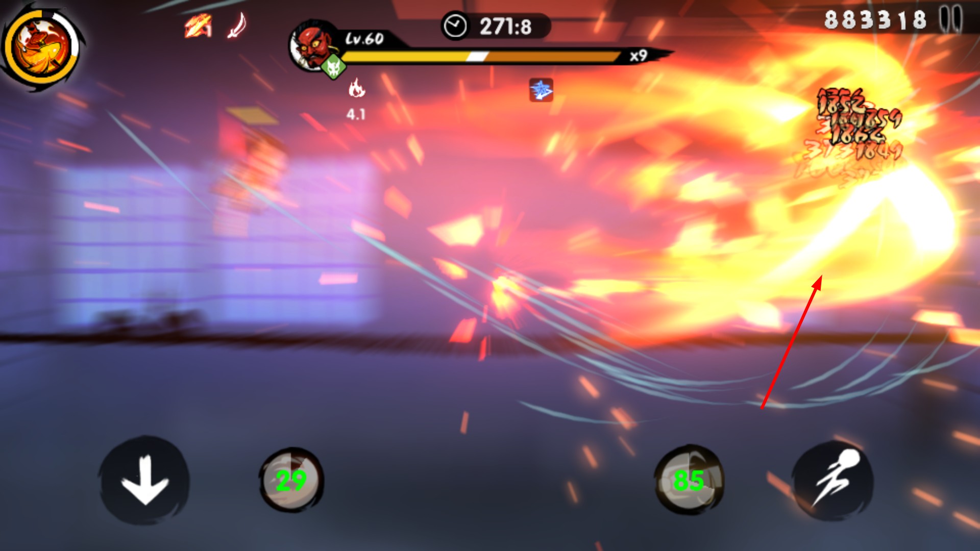 4、合理搭配技能连招,利用技能间的衔接效果,打出持续伤害,快速击败BOSS完成关卡。