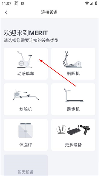 1、在merit超燃脂app的首页,点击右上角的添加设备,进入连接设备页面。