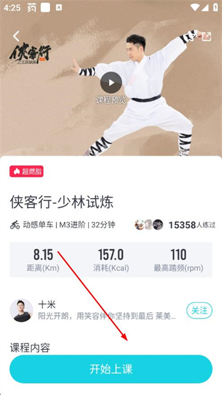 3、在课程详情页点击开始上课,即可开启锻炼。