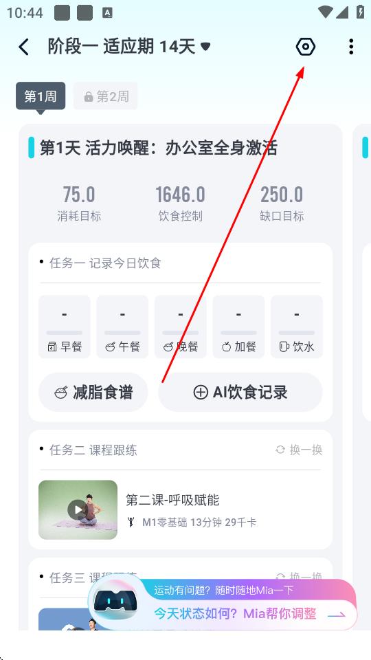 1、打开merit超燃脂App,在首页AI瘦身减脂计划板块,点击进入计划详情页面。