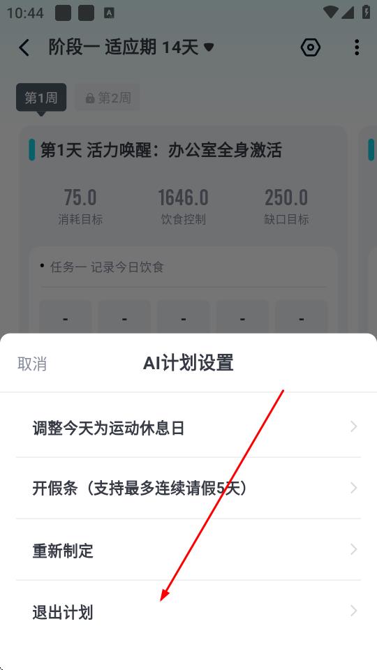 3、在弹出的AI计划设置菜单中,点击退出计划选项。