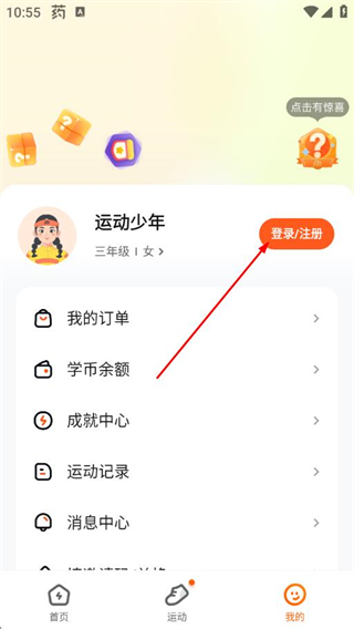 2、在“我的”页面中,点击登录/注册按钮,进入账号登录界面。