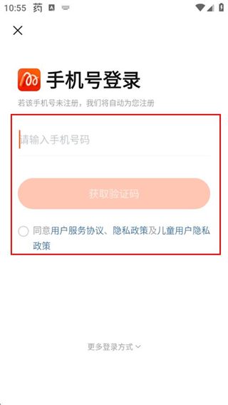 3、在手机号登录页面,输入手机号码,勾选对应的协议选项后,点击获取验证码。