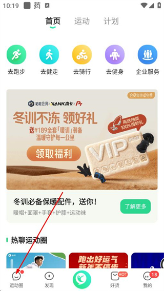 1、在咕咚app首页,点击底部导航栏的运动圈选项,进入运动圈页面。