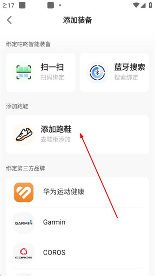 3、进入添加装备页面,点击添加跑鞋选项。