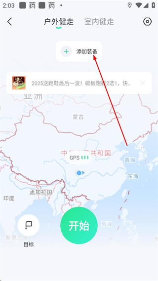 2、在运动页面点击添加装备,进入添加装备页面。