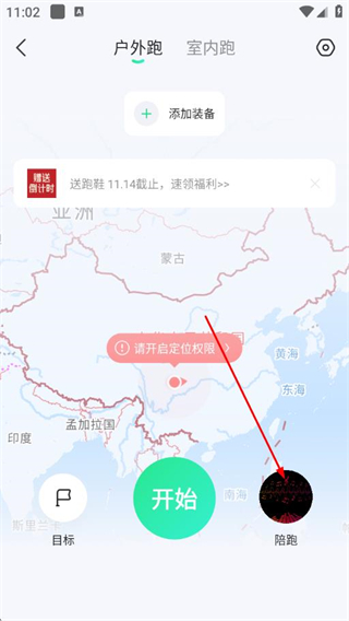 2、在跑步页面点击陪跑,进入陪跑模式选择界面。
