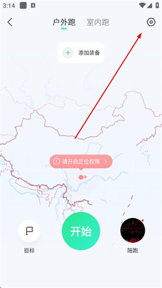 2、在户外跑页面点击,右上角的设置图标,进入运动设置页面。