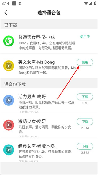 5、在选择想要使用的语音包,点击使用,即可完成语音包声音的更换。
