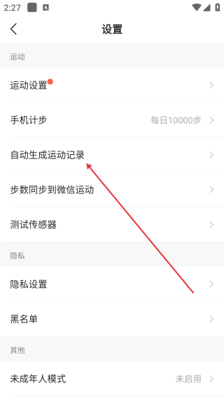 2、进入设置页面后,点击自动生成运动记录进行设置修改。