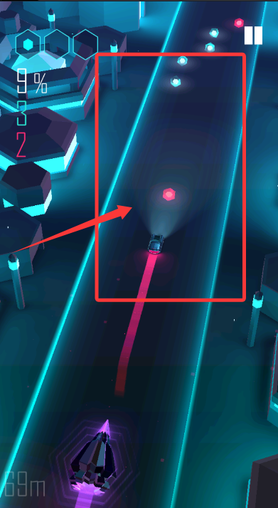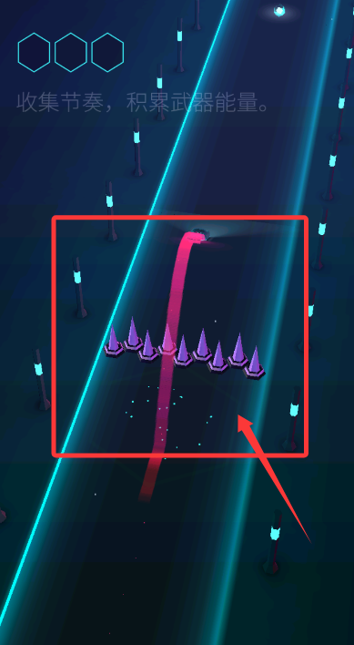 2、控制跑车左右变道,沿途收集能量晶体与节奏音符,为后续冲刺积蓄动力。
