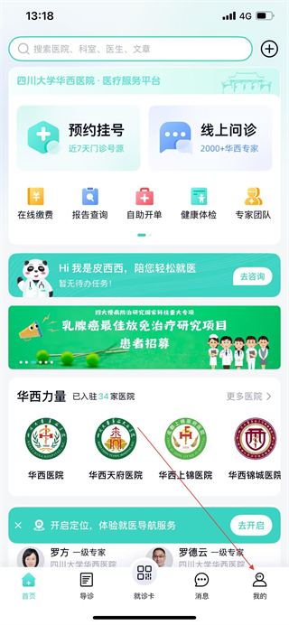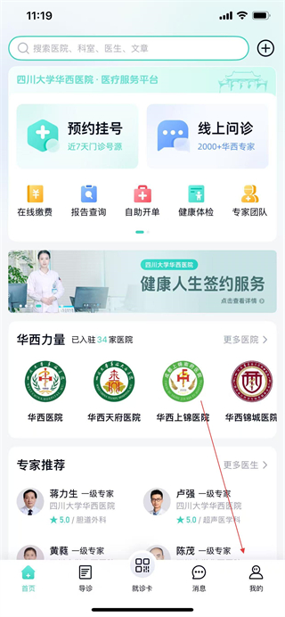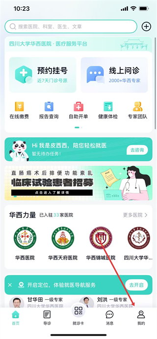 1、打开华西通APP,点击底部导航栏我的。