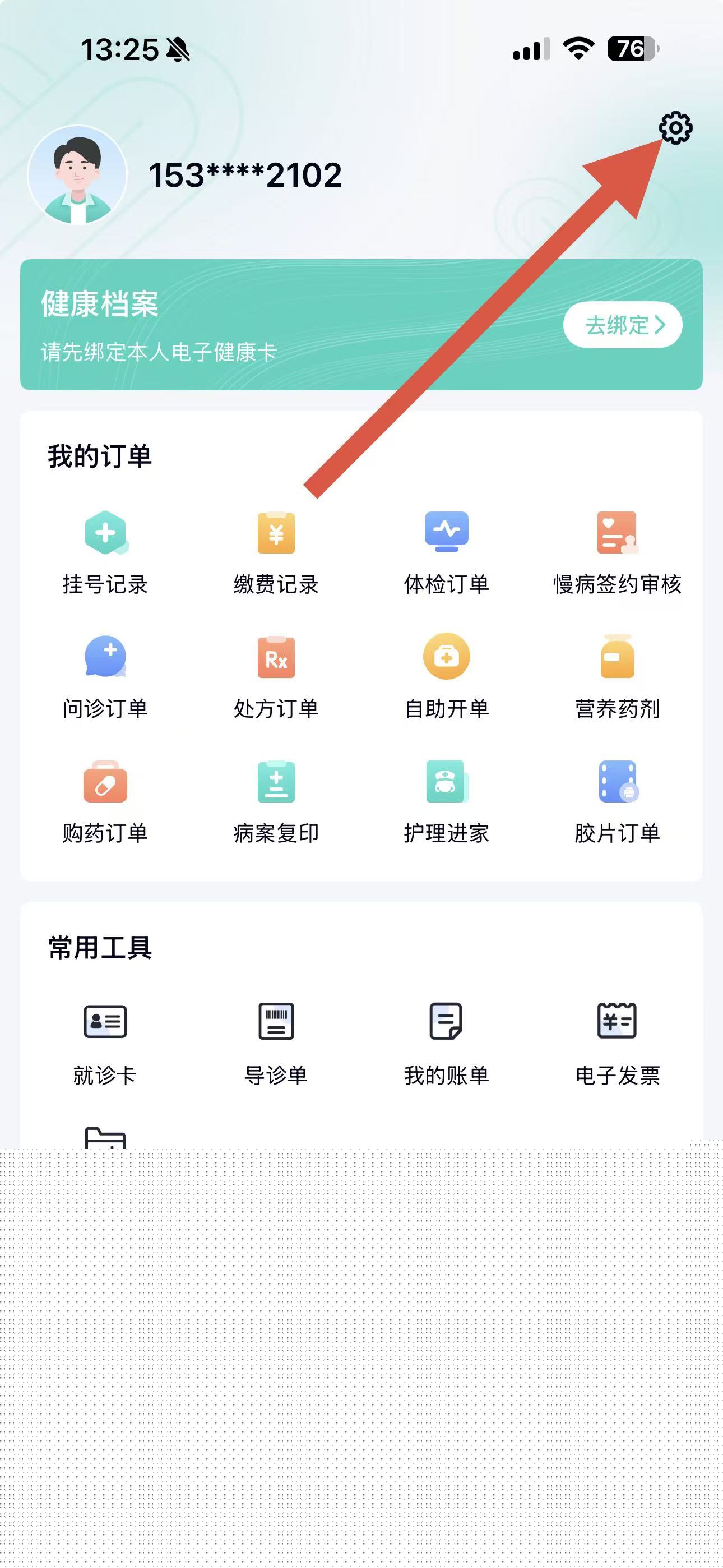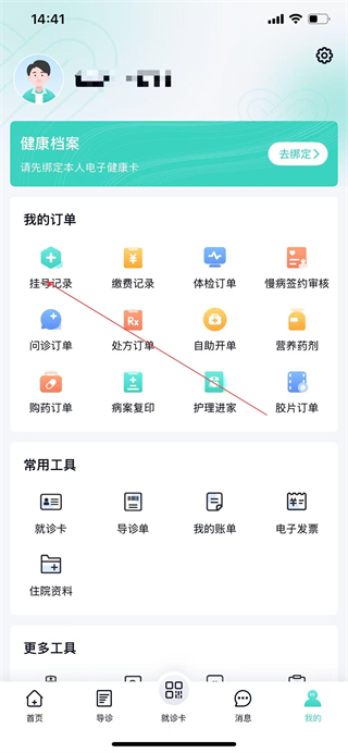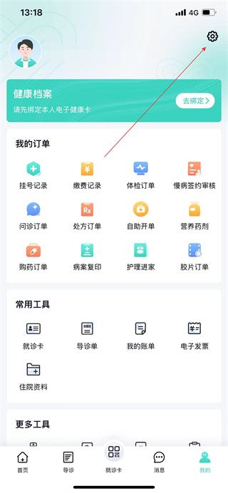 1、在华医通App首页点击底部的我的选项,进入个人中心页面。
