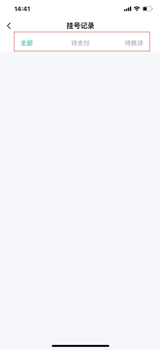 4、在挂号记录页面,可查看全部、待支付、待就诊等分类下的挂号记录。