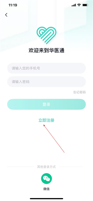 2、在我的页面点击立即注册,进入注册页面。