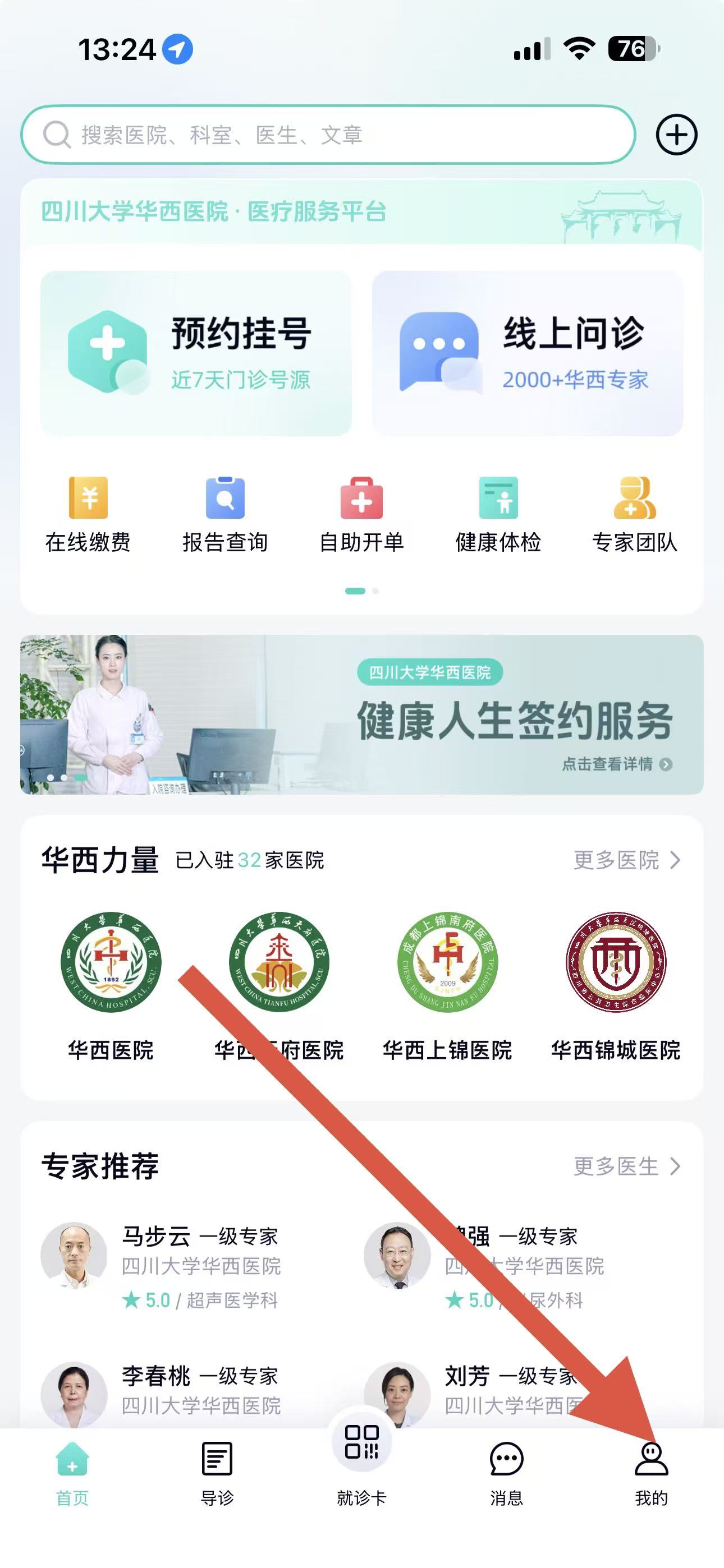 1、打开华医通app首页,点击底部我的选项,进入个人中心页面。