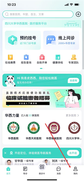 1、在华医通主界面点击底部的我的选项,进入个人中心页面。