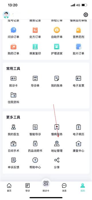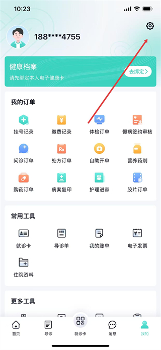1、在华医通App首页点击底部的我的选项,进入个人中心页面。
