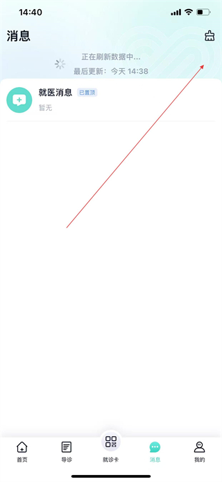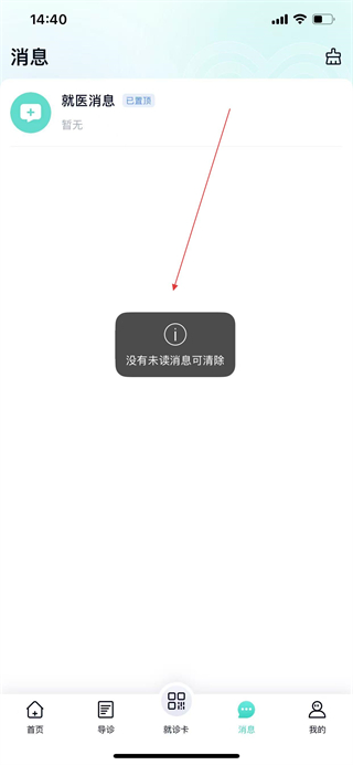 1、打开华医通app首页,点击底部消息选项,进入消息页面。