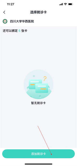 2、在选择就诊卡页面,点击添加就诊卡按钮。