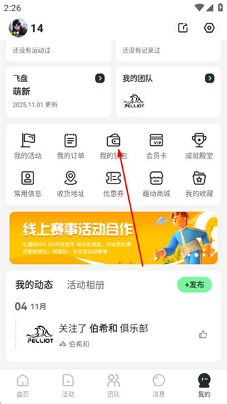 1、打开趣动APP,点击底部我的,进入个人页面。