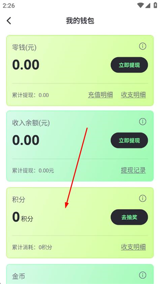 3、在我的钱包页面即可查看积分情况。