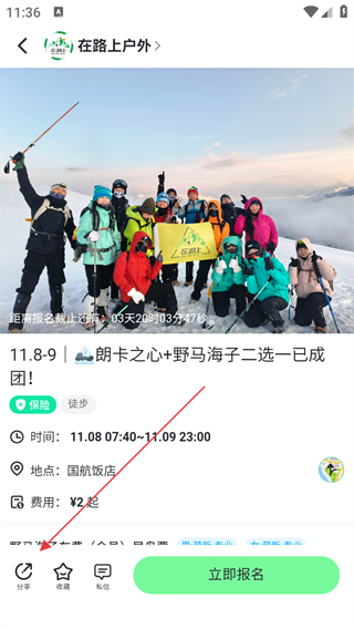 3、在活动详情页点击立即报名,进入活动报名页面。