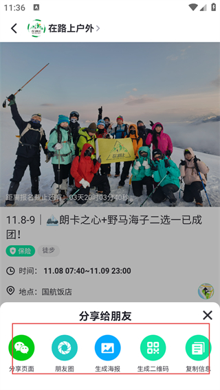 4、在弹出的分享选项中选择分享渠道,即可将活动分享给别人。