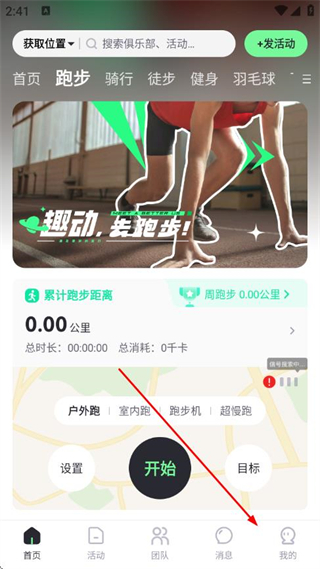 1、打开趣动APP,点击底部导航栏我的选项。